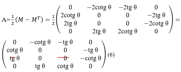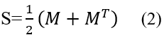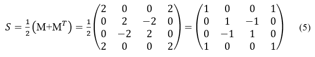 A matriz M (1) pode ser dividida na soma de duas matrizes simétricas (S) e antissimétricas (A). A matriz simétrica S pode ser representada pela soma da matriz M mais sua transposta MT.